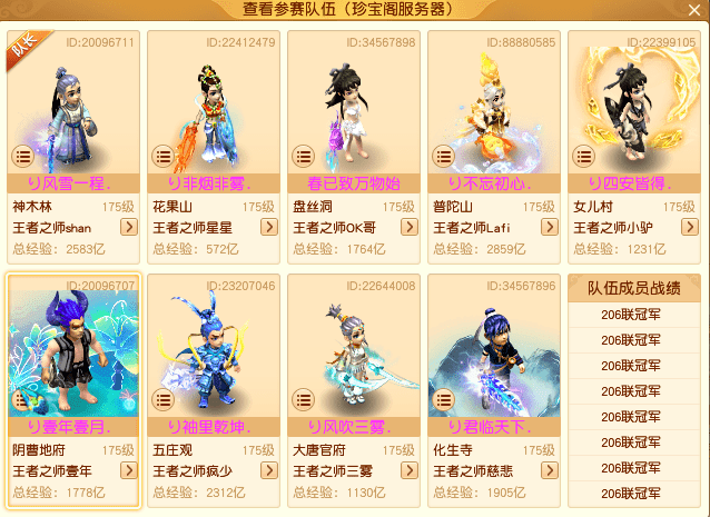 珍宝阁服战队在本联武神坛中依然坚持自我,继续选用“花果、大唐、神木”作为输出核心。就目前的武神坛环境来说,这样的选择是没问题的。因为,对于珍宝阁服务器来说,他们拥有全服最多的“多轮谛听”,双神器在手的他们只要能保证单点爆发伤害,就可以找机会拉谛听速推比赛,拿下胜利。