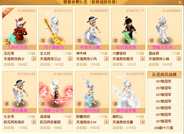 就本联武神坛的情报来看,紫禁城携带了3000万战神,冲这个操作也知道他们此次出征就是冲着冠军去的。不过,就阵容体系来说,紫禁城依然是“大唐、凌波、神木”那套,并没有启用九黎城。