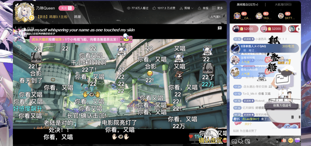 库洛的《鸣潮》本月升至第5名,达到历史新高。其3.1大版本不仅推出了核心角色爱弥斯,催泪的剧情更被部分玩家称为“二游剧情最高的山”。这种口碑直接转化为了热度,比如时,拿到了超22万的同接(最低限度观看/互动行为的观众数量),打破了相关直播的历史记录。