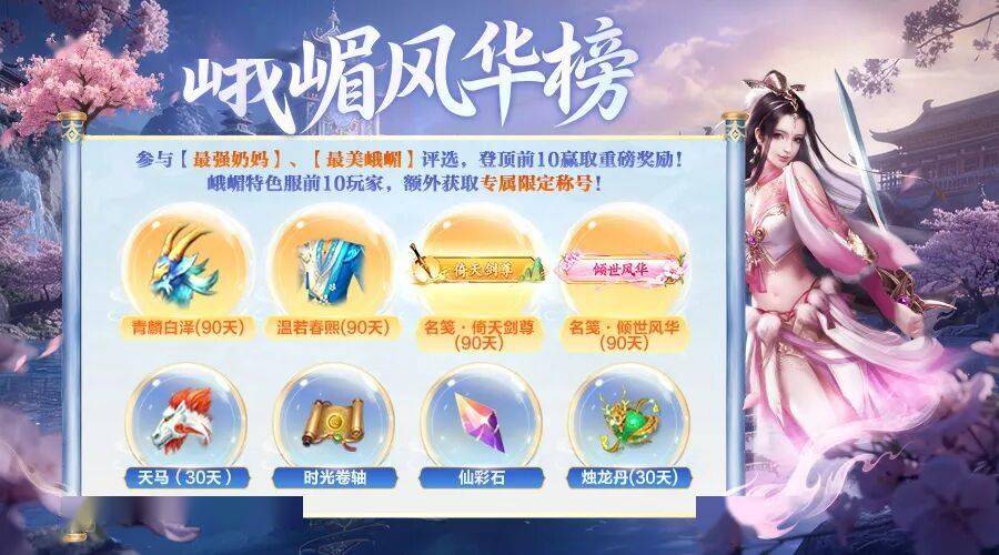 最强奶妈榜:活动期间,本服战力排行前50的峨嵋玩家即可登榜,用实力证明谁是峨嵋之巅。