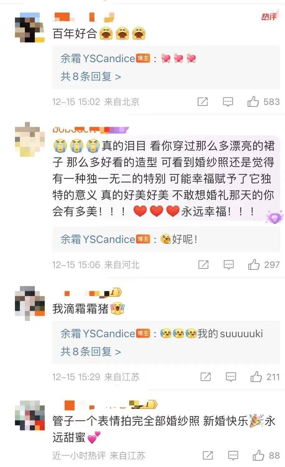 余霜写道:“迄今为止我仍觉得分享欲是最高级的浪漫,很庆幸相识了7年的我们每天依旧有说不完的话,你懂我的每一句话,你懂我的每一个表情。你毫无理由的偏爱,简单而又炽烈。往后余生不用指教了,听我指挥就好。”