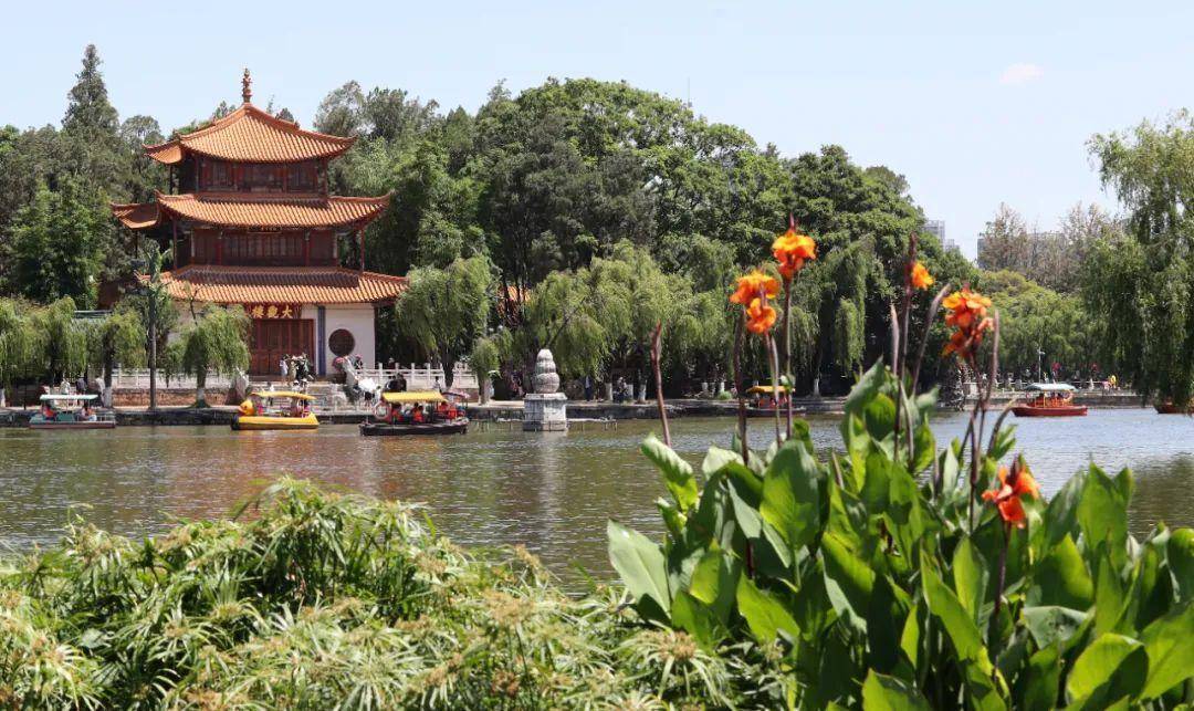 大观楼位于昆明市大观公园,全楼结构稳重精巧,和谐美观,体量适中,庄重秀丽,既与我国主流传统建筑文化一脉相承,同时,“五墨”彩绘及挑檐檩枋头木雕均为象头或花卉图形等,又具有鲜明的地方民族文化色彩。乾隆年间,孙髯翁创作180字长联状景怀古,情景交融,文采飞扬,被誉为“古今第一长联”,现悬挂于一楼南门两侧。