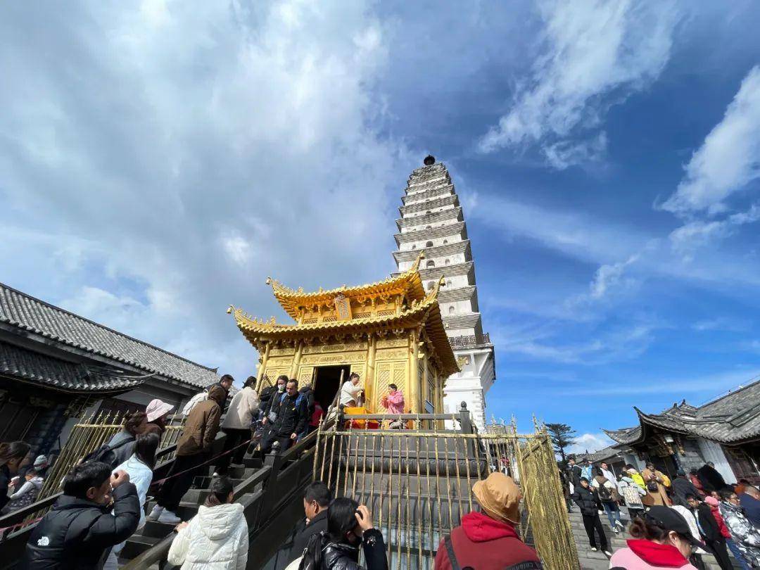 每个季节,楞严塔都在鸡足山顶变幻着不同的风景:春日繁花,楞严塔装点满山的杜鹃山茶;夏日云海,楞严塔在云海中如同漂浮的地标;秋日天高,楞严塔在蓝天和绿树之间成为醒目的分界;冬日晴雪,楞严塔和鸡足山一片晶莹剔透。
