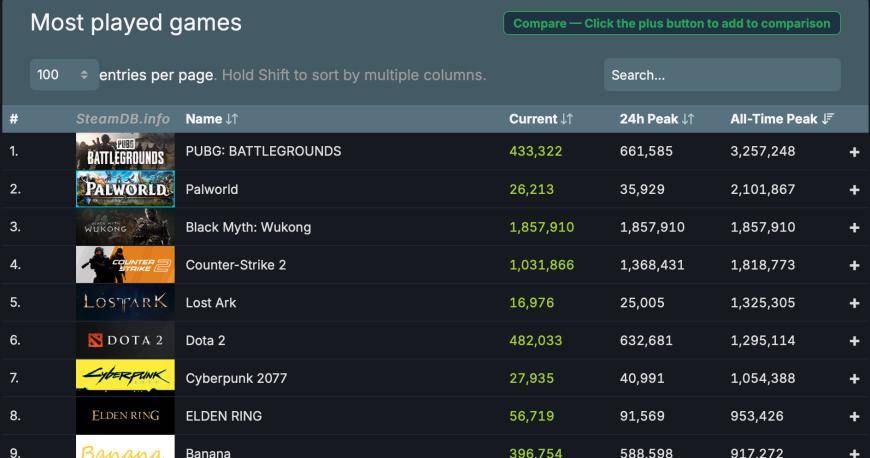 图片来源:第三方数据监测机构Steam DB网页截图
