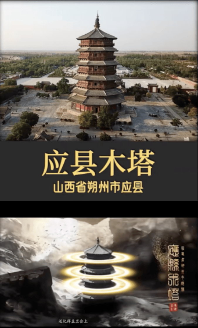 佛宫寺释迦塔,又称应县木塔,位于山西省朔州市应县佛宫寺内,始建于辽清宁二年(1056年),是世界上现存最高大、最古老纯木结构楼阁式建筑,与意大利比萨斜塔、巴黎埃菲尔铁塔并称“世界三大奇塔”。
