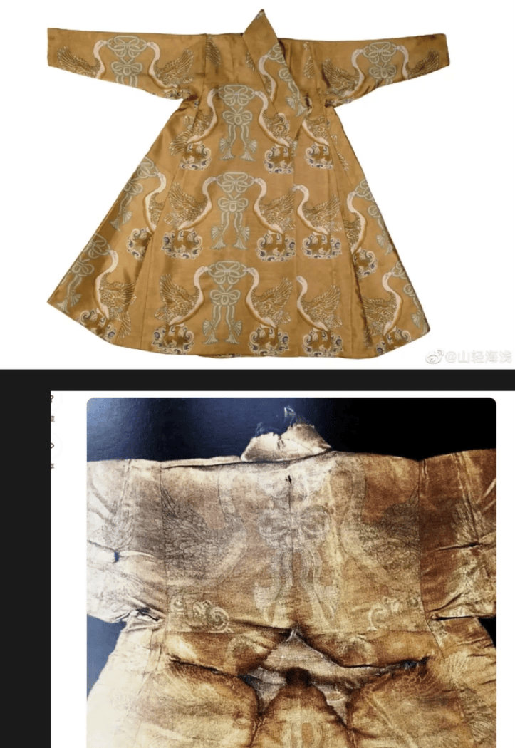 创作者包里还有不少直接参考出土文物的服饰。比如“辽雁衔绶带锦袍”,就参考了代钦塔拉辽墓出土的左衽交领袍。