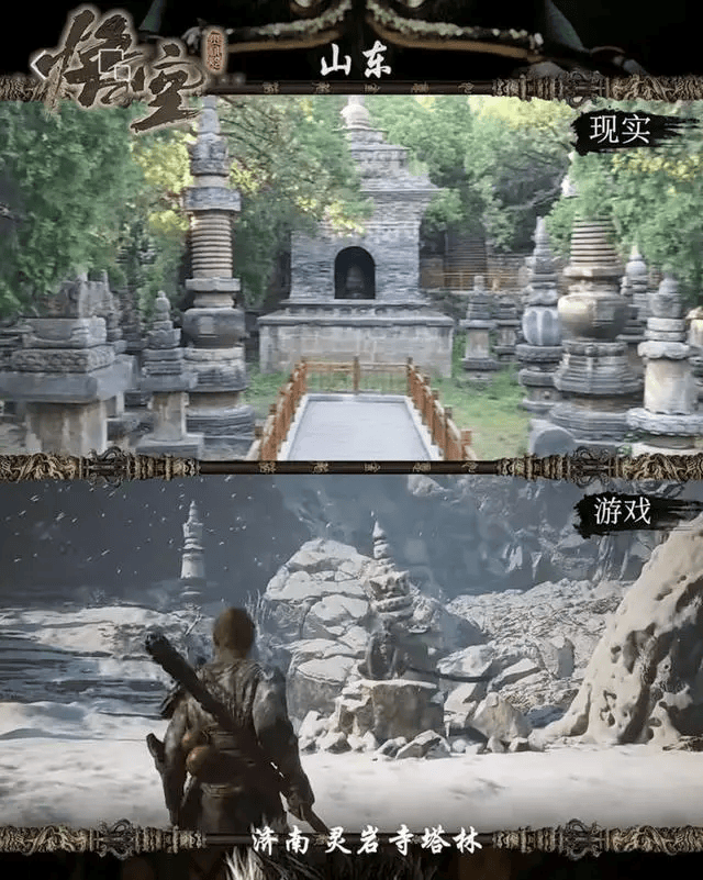 值得一提的是,该游戏中大量高度还原中式古建筑成为游戏的一大亮点。据不完全统计,《黑神话:悟空》在全国范围内选取了36个景点作为游戏背景,其中包括济南灵岩寺墓塔林和四门塔,山西的小西天、玉皇庙,四川的安岳茗山寺、重庆的大足石刻、杭州的灵隐寺、丽水的时思寺等。