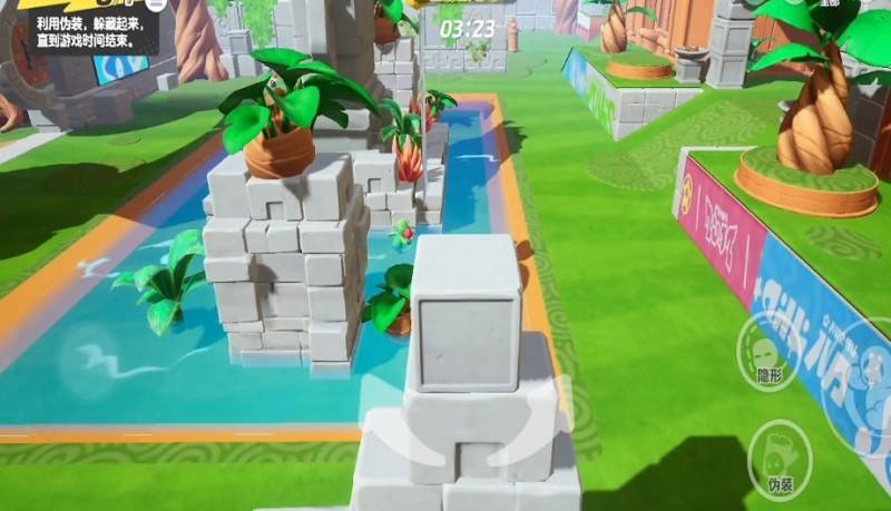 接下来是“躲猫猫”玩法。这个模式就像我们小时候玩的躲猫猫游戏一样,你要藏起来不被抓捕者发现,而抓捕者则要找到找到藏起来的玩家。躲藏者有两个技能,伪装和隐身,顾名思义,伪装可以变成游戏里的道具来欺骗抓捕者,而隐身则可以让你在抓捕者的眼皮子地下逃跑。是不是想当刺激!