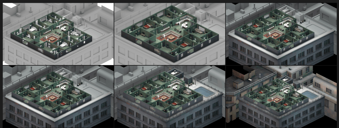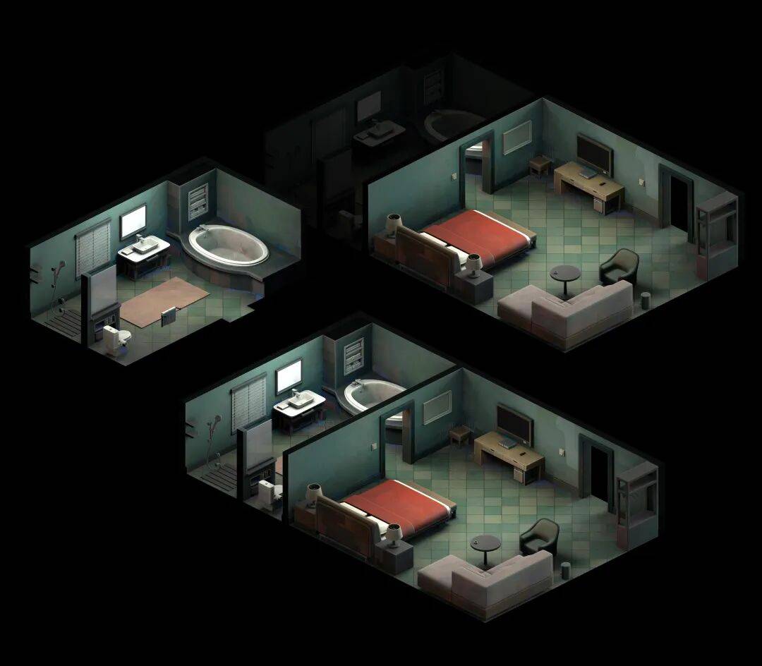 上一部作品中,需要制作的资产只有 8 个房间。这次的工作量接近上次的 3 倍,考虑到还要提高画面质量,所以还是先制作一个房间为标准。