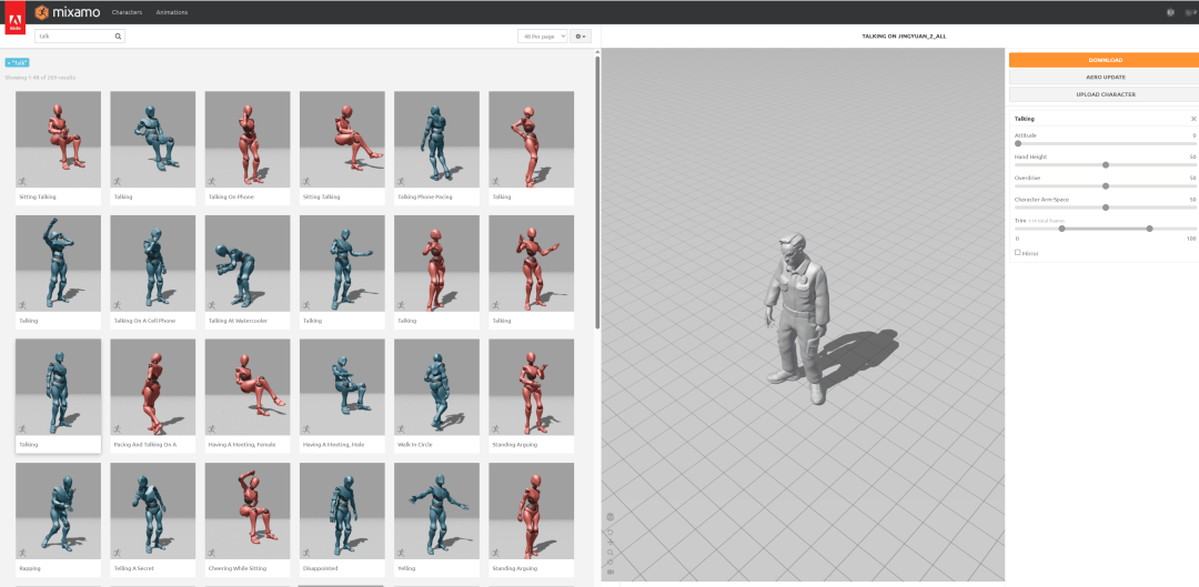 到这里,需要的美术资源基本都做完了。后续动画部分用当前模型丢入 Mixamo 中直接去输出就可以,我测试过,经过减面后,每个角色模型为 10W 面,Mixamo 可以带动,虽然有时候会有点卡。所以我就没再继续减面了,这种体力活还是干不习惯。