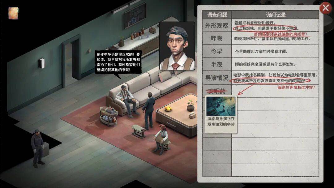 游戏的核心解谜逻辑被确定为:寻找证词与证词/证物之间的矛盾/印证。