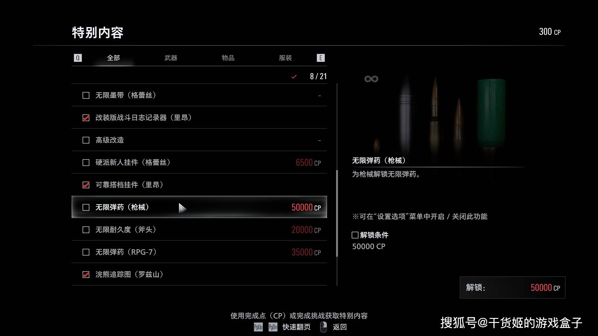 卡普空的游戏似乎总有种神奇的魔力,打通关仅仅只是开始。哪怕不算《生化危机》系列,《鬼泣》《怪物猎人》乃至《街霸》都是允许玩家投入大量时间游玩并且能得到反馈的游戏。如果你是《生化》系列新玩家,只把游戏通关了一遍就封盘了,也许你可以试试再开一周目,会有完全不一样的体验,或者说,这个系列的一大乐趣就在于反复游玩,从官方提供的各种成就奖杯、CP点数挑战都可以看出来,游戏本身也是鼓励玩家在已经知晓流程内容后再次进行游玩的。而在这种广义上的“背板”的前提下,第二轮的游玩体验可以说是截然不同,这种不同同样也是系列的乐趣之一。