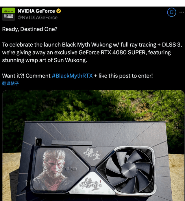 不仅如此,在《黑神话》临近发售时,英伟达就开始在全球市场帮忙宣传,出人又出力,比游戏科学自己还卖力。