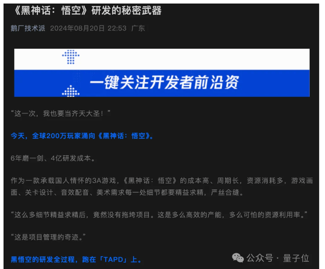 《黑神话》已经不只是一款游戏,在整个商业和科技圈都是一款现象级作品。