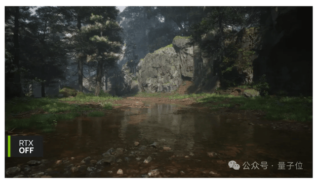 有了光追反射,画面中的水变得更加清澈,水边石头的倒影也变得更加清晰了。