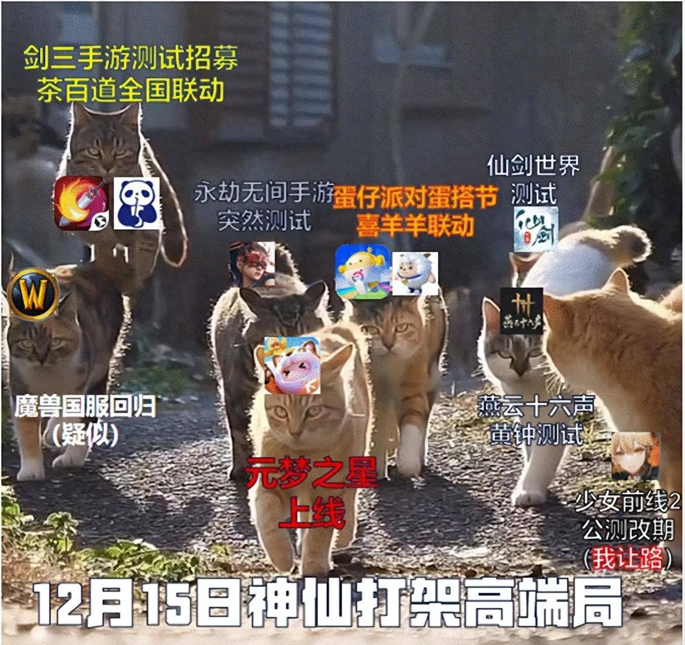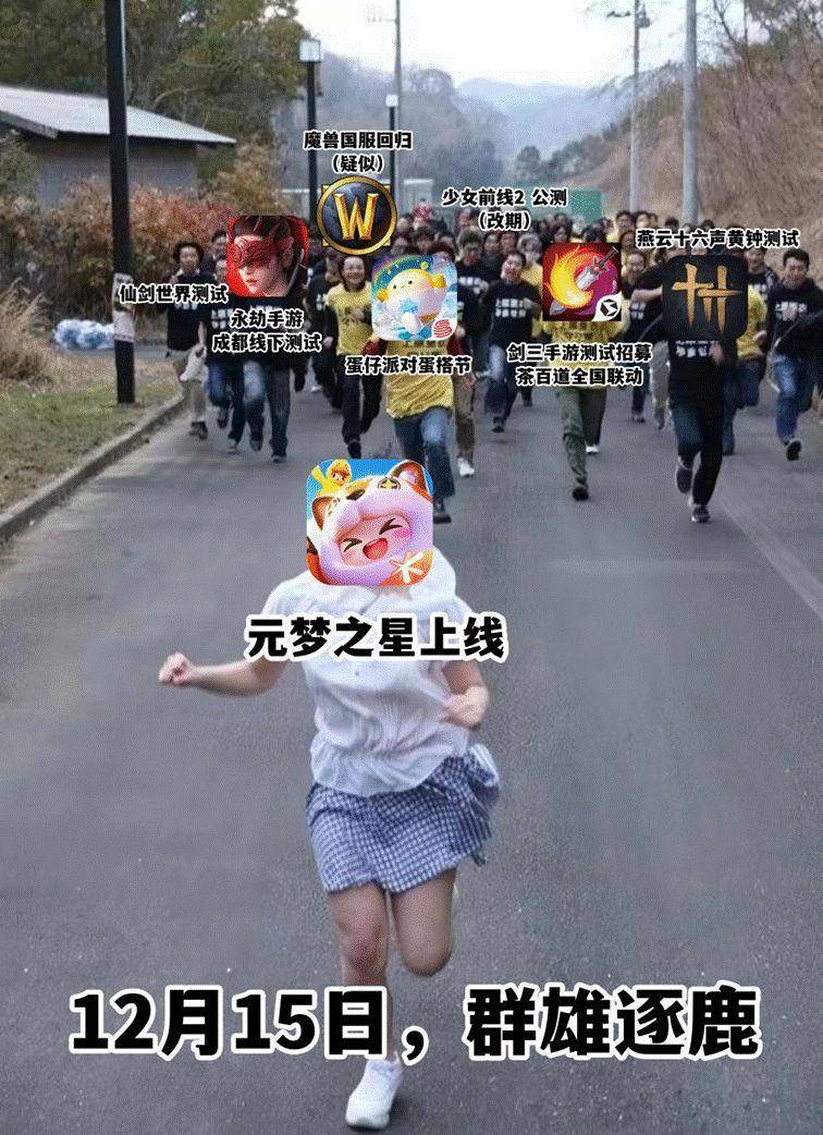 面对来势汹汹的元梦之星,网易那边自然是如临大敌。一听说元梦之星要在12月15日上线,蛋仔派对立刻跟进,选择在同日开启蛋搭节福利风暴正面硬钢,俨然一副既分高下也决生死的架势。最离谱的是,就连网易旗下已经许久没有动静的永劫无间手游和燕云十六声也突然“诈尸”,宣布将在12月15日开启线下测试。本以为只是简简单单开个服的元梦之星接连遭到网易三款游戏狙击,也是上线首日就立刻达成了前无古人的“三英战吕布”史诗级成就。