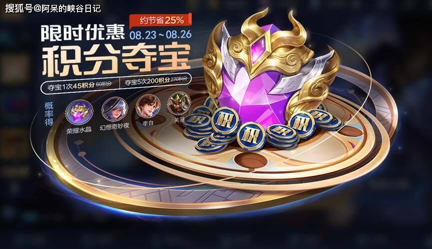 本次荣耀典藏皮肤上线之后,还会开启积分夺宝折扣活动,活动时间为8月23号至8月26号。