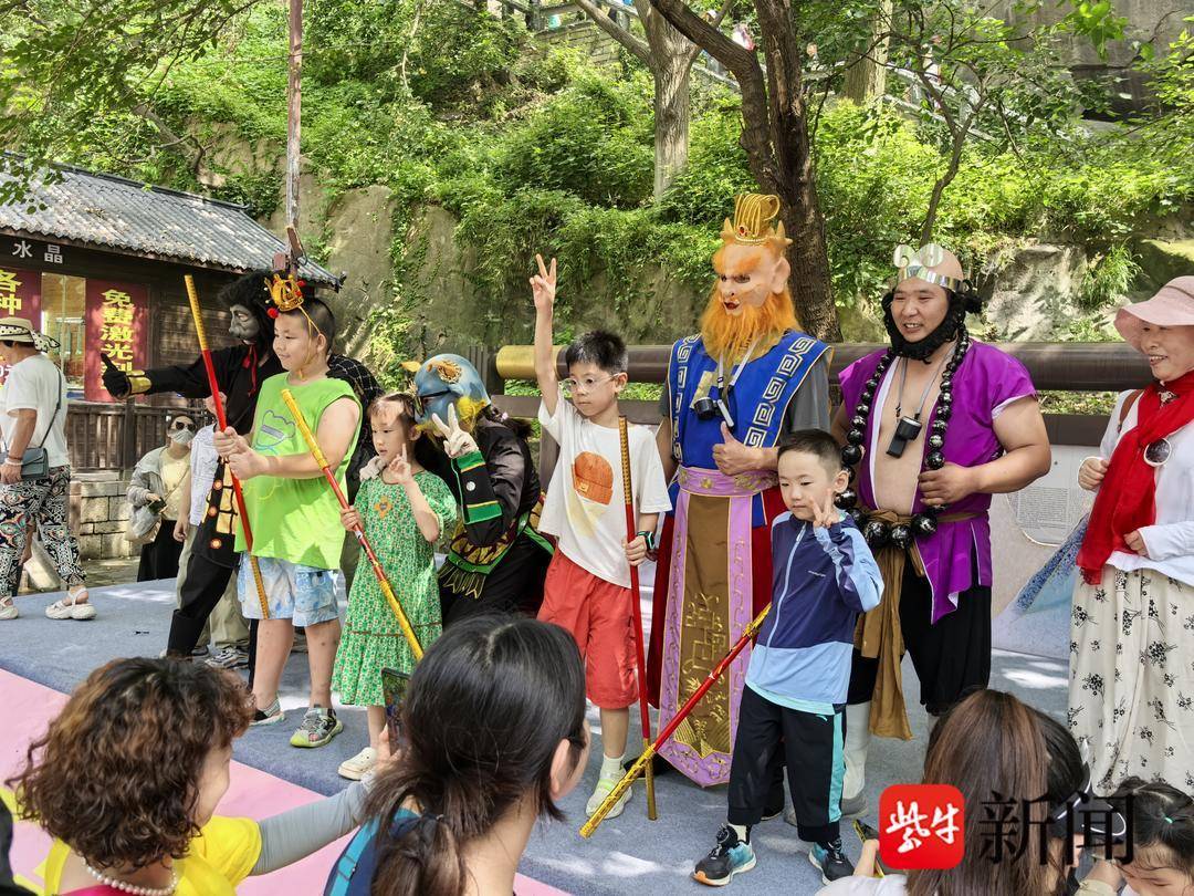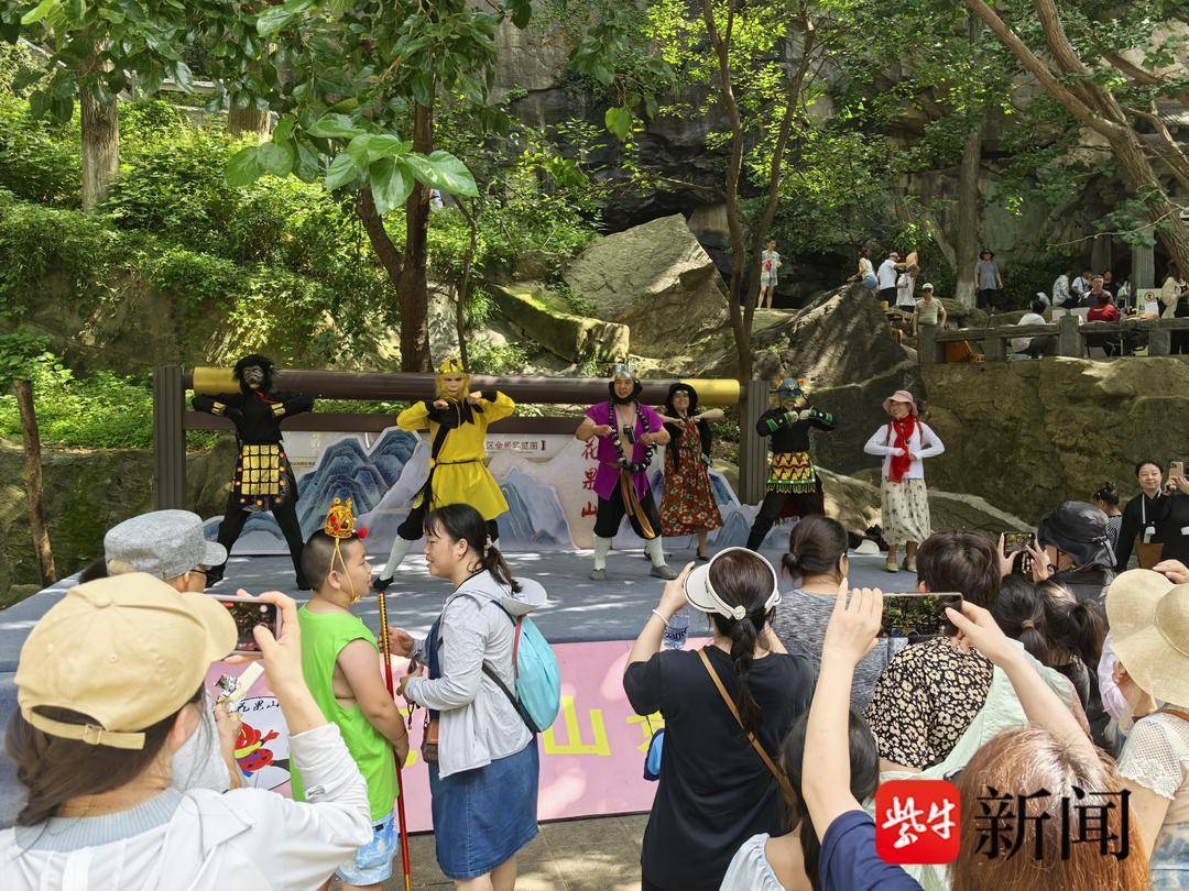 据花果山景区文化旅游科科长刘智介绍,花果山景区多年来一直致力于西游元素的打造,大到景区内众多景点,小到从景区里的路灯、指路牌、垃圾桶,以及景区里的艺术表演、节庆活动、文创产品全都充满了西游元素。“目前,景区水帘洞等景点都在进行提升打造,更能满足游客对‘大圣故里 西游胜景’的心理预期,我们细节也围绕着西游元素在做,包括金箍棒造型的路灯、张贴西游故事画的景区交通车,游客们在景区能找到的细节都有西游元素。”