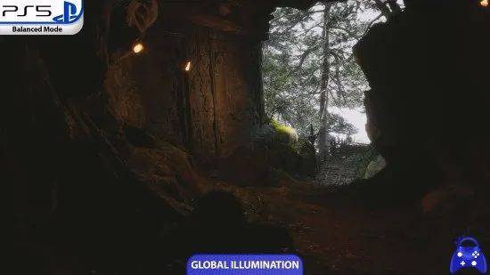 作者指出PS5的画面设置表现处于PC版本中、高之间,部分纹理效果不如PC版本。由于采用了虚幻5的Nanite技术,两个平台上的绘制距离都值得称赞。PC端可以通过激活反射、阴影和全局照明的光线追踪,可以获得相当出色的展示效果,不过这种设置对性能要求很高。