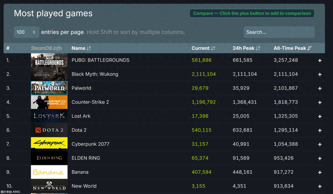这样一来《黑神话 悟空》也超过了年初现象级游戏《幻兽帕鲁》位居Steam同时在线历史榜第二。