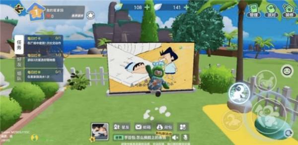 大家可以一同在游戏当中聚会玩耍聊天,甚至还支持看电影看剧。这里所说的看电影就是一个投影仪的小工具,是星家园当中是一个免费的道具,在院子里就可以直接使用。其中内置了腾讯视频当中的插件,大家可以随意观看腾讯视频当中所拥有的影视资源。除此之外,在星家园当中,还有许多类似的交互性用法,比如可以用一台音乐点唱机为客人播放歌曲。