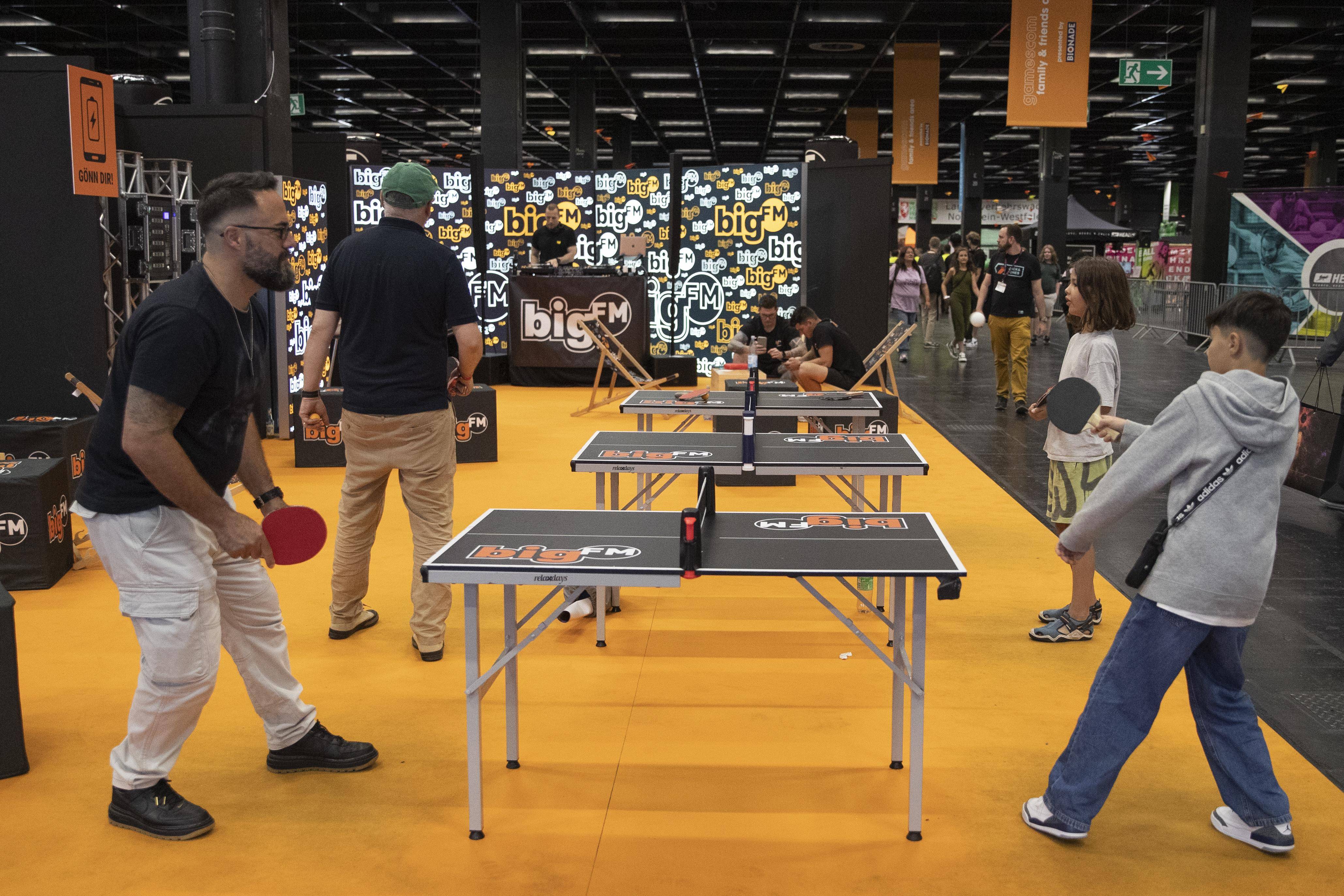 8月21日,人们在德国科隆举办的科隆国际游戏展上试玩迷你乒乓球。 新华社记者 张帆 摄