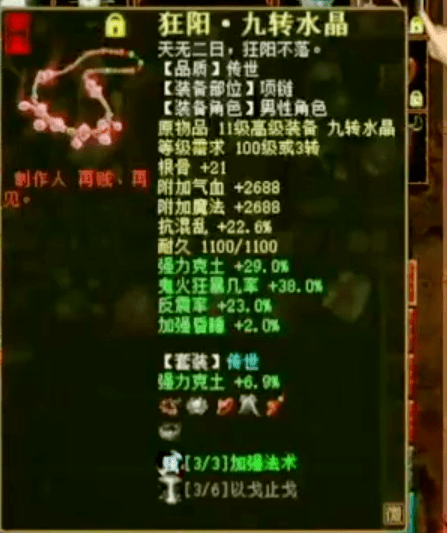 如果是百爆鬼,那么这三件装备的狂暴几率可达到67%,之后优先追忽视鬼火,其次追鬼火狂暴程度或克,星卡呢都是双狂暴程度的,或者忽视鬼火加狂暴程度也不错,其他装备看个人预算而定。