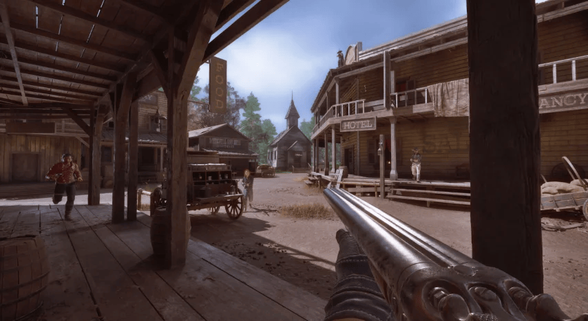 从目前公布的信息来看,该作品看起来有点像一款包含了生存建造玩法的荒野大镖客,玩法上更偏向多人MMORPG一些。