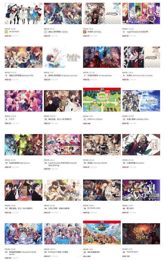 由于本次活动仅在港区和台区的NS eShop商店进行,所以此活动一经上线直接把旗下所有乙游送上了NS的销量榜单,把NS2新推出的宝可梦游戏《宝可梦Pokopia》都挤到了前十名之外。