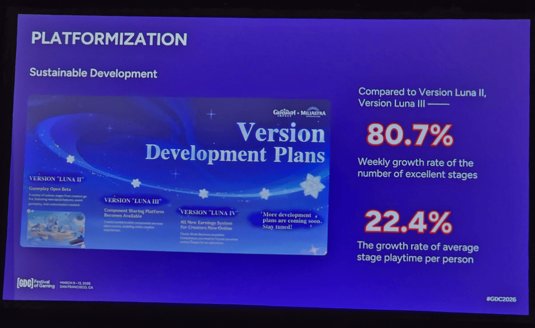我们最早在2022年5月开始思考UGC的意义。当时《原神》刚刚发布须弥地区。即便以今天的标准来看,须弥的地图规模与探索内容依然十分庞大。为了提供接近双倍的内容量,我们投入了大量人力和资源。但与此同时,我们也逐渐意识到,团队规模不可能无限扩张。于是我们开始反思:或许单纯依靠官方团队持续生产内容的方式,终究会遇到瓶颈。