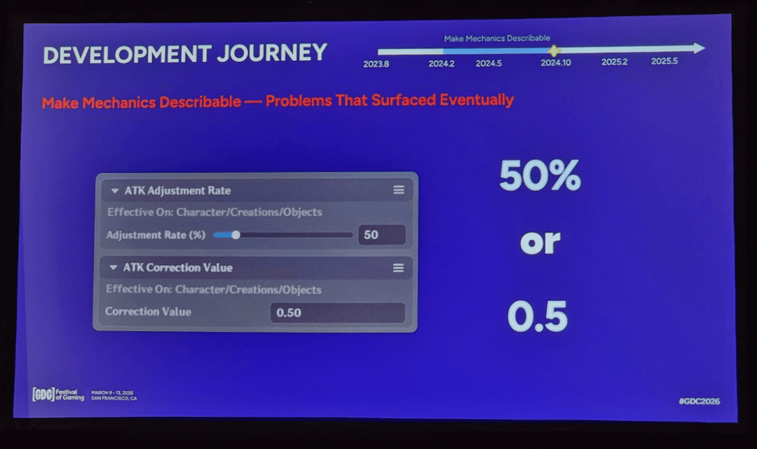 正是在这一阶段,我们再次正视“一关一文件”方法带来的问题。例如,当创作者输入50%的攻击调整率或0.5的攻击修正值时,系统逻辑要求两者均写入0.5,但这与我们常规的百分比表达方式并不一致。因此编辑器不得不引入100倍系数进行转换,这不可避免地导致编辑数据与运行数据之间产生冲突。