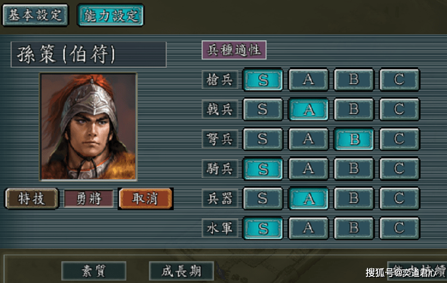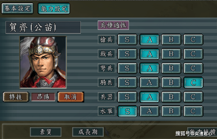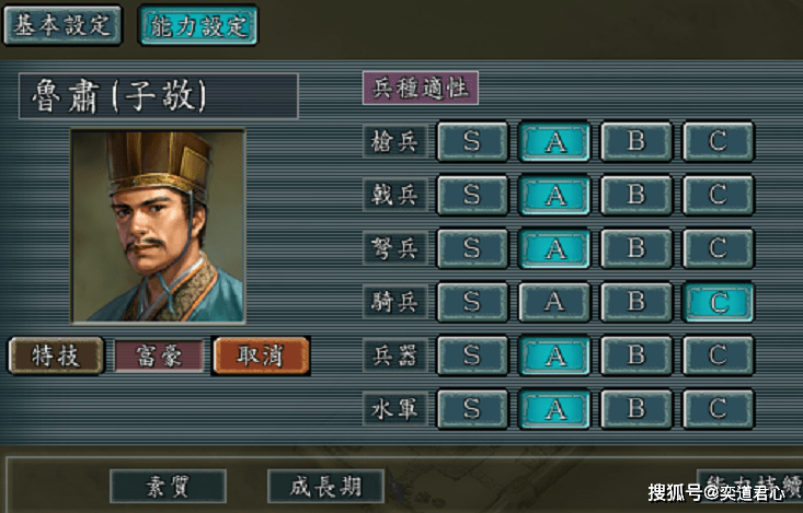 山越巡警贺齐,就兵种适应性而言跟鲁肃算得上是高度重合。遗憾他们都没怎么见过马,不然也不至于只是C级骑了。