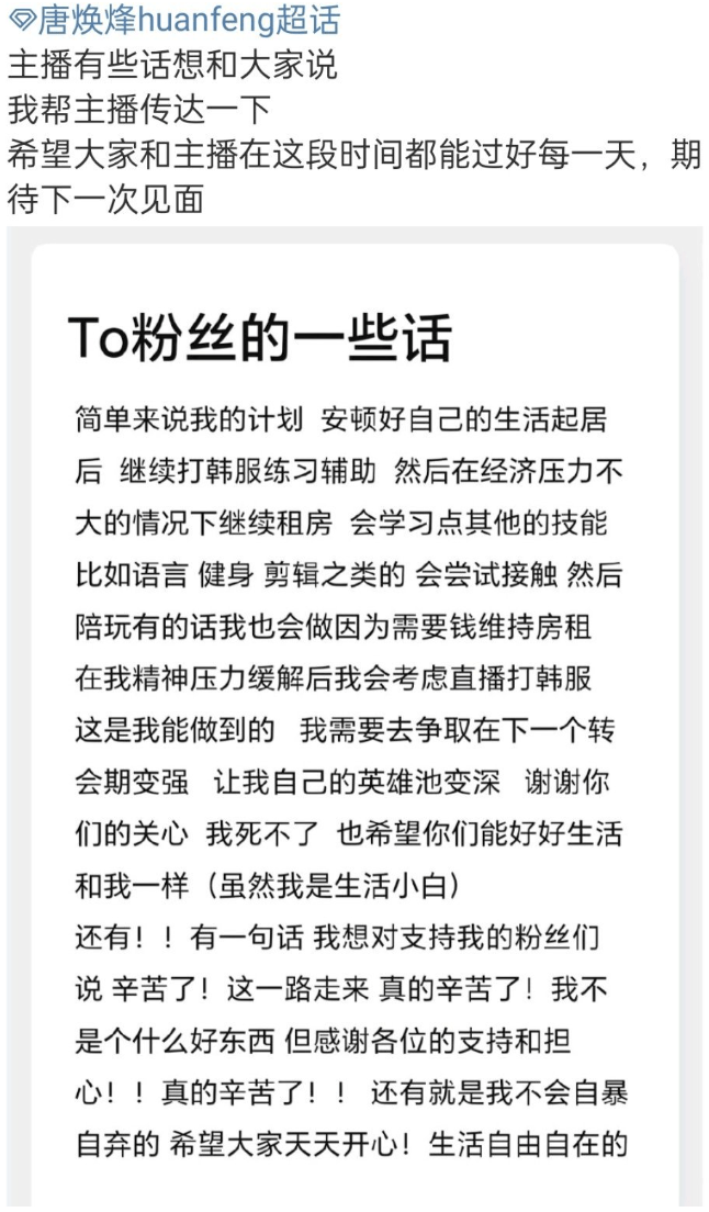 但这段时间要做陪玩来支付自己的房租,也会去学一些别的东西来充实自己,总之看的出来焕峰对于未来还是有信心的。