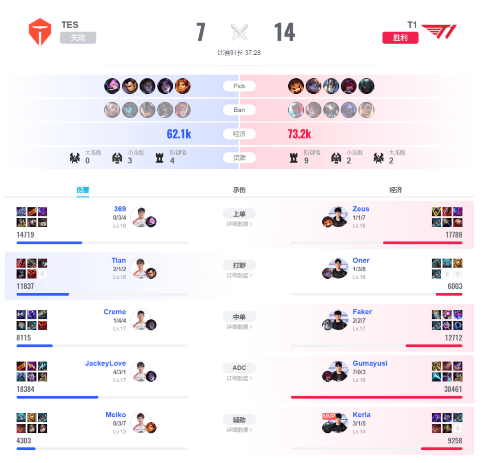 还有S13时期LNG被T1零封,那一场打完之后,打野Tarzan就一直背负着忠诚的骂名。同时还有S13决赛时期WBG打T1,也是三局速通,第一局30分钟、第二局29分钟、第三局25分钟。其实被零封不重要,最主要的是,这么多年这么多场次,我们的BP和运营,始终都在被牵着鼻子走,无法打出自己的东西。或许真的就只能靠BLG了,不知道他们能不能拦住这支GEN!