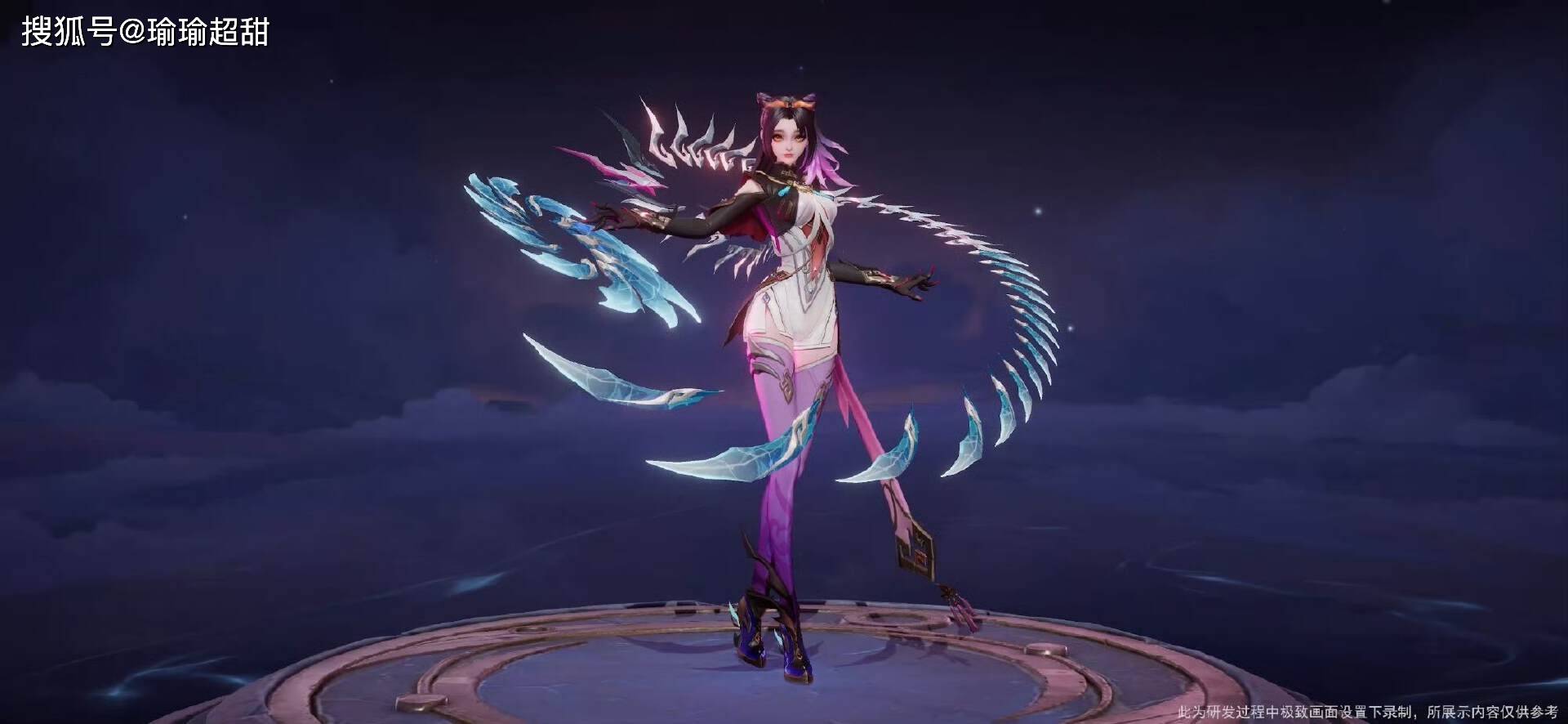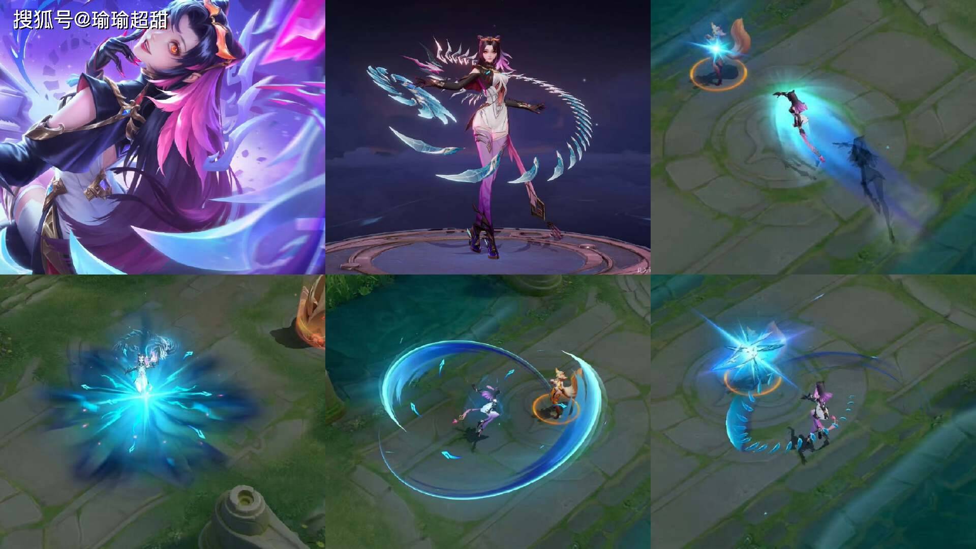 然后再来看一下技能特效,整体的色彩主要是展现出了一种蓝色主题,没有其他的特别元素,和原皮肤的动作基本一致,就是颜色不同,稍微融入了一点百相守梦系列的风格特点。