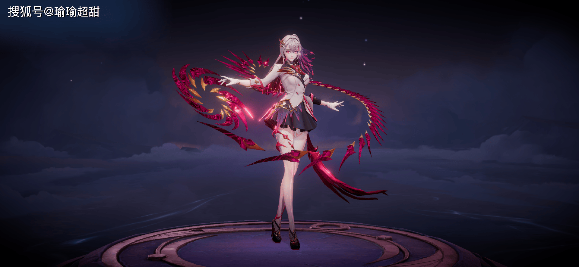 然后我们再来看一下影的首款勇者皮肤,这款皮肤本身展现出来的那种效果,就有一种西式校园风的那种感觉,然后武器主题是红色,再加上这裙子的效果,彰显出了一种女王气息的风范,所以这款皮肤的形象特征,我认为更好看一点。