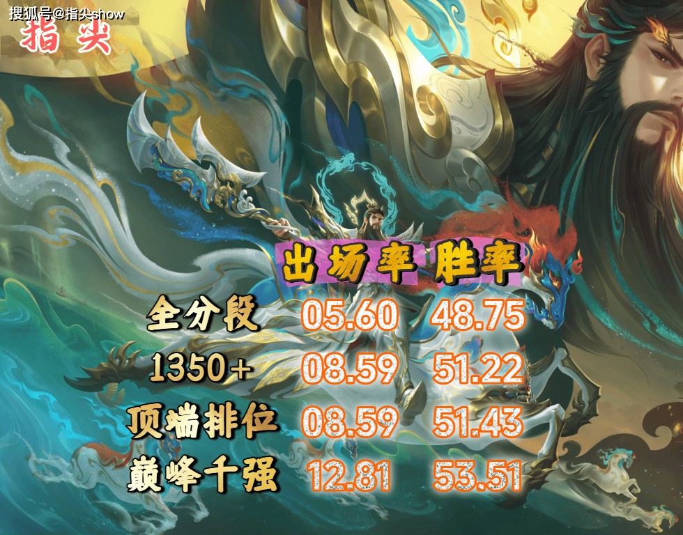 关羽能冲到这个位置,完全是靠自己连续加强,以及装备的调整所致,现在控制的收益已经大于输出了,开团型边路,对入场时机有较大的需求,但用好了绝对上分神器。