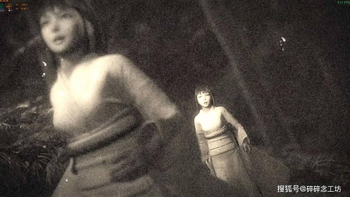 当然,本作主角毕竟是一对柔弱的少女,很明显她们没有能力与怨灵正面对抗,使用具有灵力的照相机进行拍照,就是玩家唯一的战斗手段。这个设定一方面是对应恐怖文化里面常见的《灵异照片》主题,另一方面它为本作赋予了跟其他恐怖游戏完全不同的战斗体验。我们常说恐惧来源于火力不足,但是当你游玩零系列的时候,主角每次举起照相机都会切换为第一人称视角,就像《逃生》系列里每次拿起夜视摄影机一样,随时随地带来被限制视野的压迫感,即便玩家的照相机性能经过多周目全面强化,装备精良伤害爆表,依然无法完全摆脱随时可能被厉鬼突脸的惊悚压力。