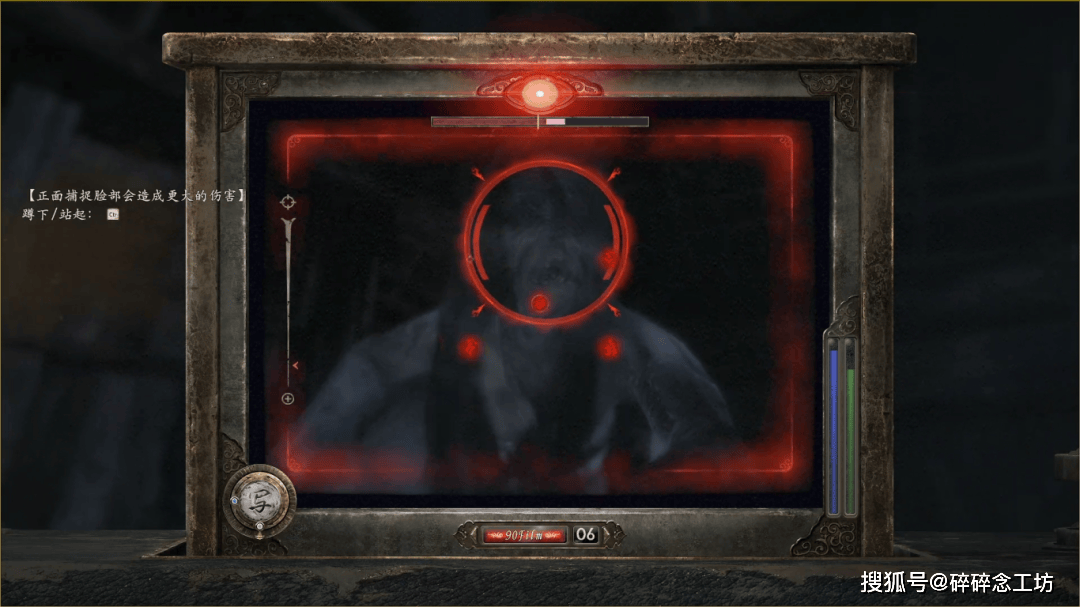 第三,照相机存在养成升级机制,游戏中收集到的念珠可以用来升级照相机,比如增加焦点和射程、提升胶卷装填数量、提升不同滤镜的性能,解锁对焦和变焦功能等等,注意这其中很多都是原版《零红蝶》所没有的新要素。第四,不要把照相机简单理解为枪,因为伤害输出与拍照质量直接相关,以镜头焦点为标准,焦点覆盖越多照片越清晰,给予怨灵的伤害就越高,反之拍得不好就伤害刮痧额外消耗大量胶卷,所以前期升级推荐优先增加焦点,普通难度之下往往三到四张近距离照片就能让怨灵灰飞烟灭。