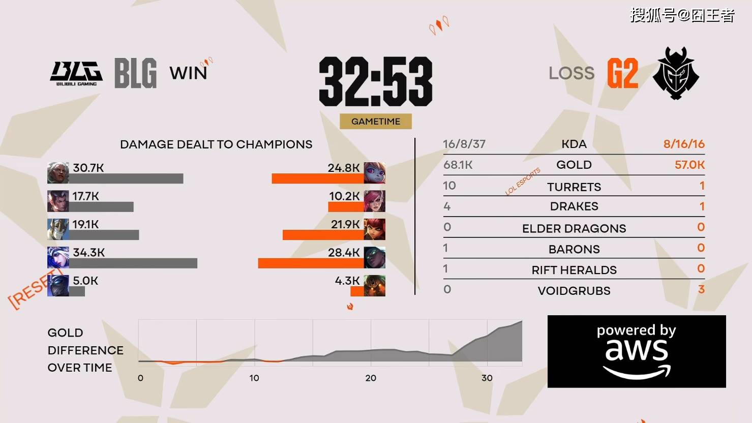 结果第三局比赛,本以为G2要发威,可以G2继续低迷,被BLG又打了个单方面的碾压局。2分钟,BLG2打3击杀下路双人组,随后Xun来越塔再杀SkewMond;5分钟,Knight阿卡丽R闪起手丝滑连招,单杀Caps后潇洒撤退;7分钟,纯粹的碾压,BLG下路双人组七分钟越二塔完成线杀;7分钟,太残忍了,Knight阿卡丽抓住机会再次瞬秒Caps;17分钟,本场单杀王!Knight下路抓住机会再次瞬秒Hans Sama;22分钟,Knight伤害爆炸瞬秒巨魔,随后上头追击送出终结人头;最终30分04秒,BLG团灭G2,成为2026全球先锋赛第一支晋级淘汰赛的队伍