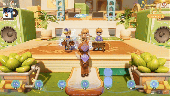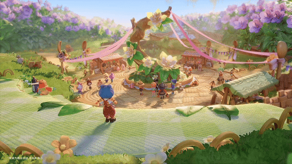 而乌噜村则是一个开放的大广场,陌生玩家扎堆聚集,有的匆匆路过、有的忙着跟粒粒交谈,也会有人为一场广场音乐会驻足。只要你挥挥手就能开启一场组队舞蹈,感兴趣的路人也能随时加入,观众在旁边鼓掌拉礼花,甚至连粒粒都会驻足挥舞荧光棒!