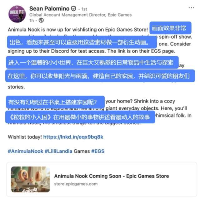 epic负责人亲自发文称赞小人国