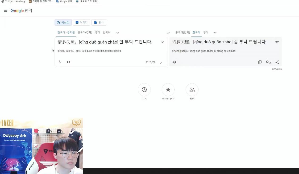 结果比赛呈现出了比较一边倒的局面,Faker一开始是边玩慧边学习怎么玩,还直呼这个英雄太难了,后面开始各种学习中文,只要自己一阵亡,或者说在赶路的过程中,就会切换界面去学习一些中文的词语。