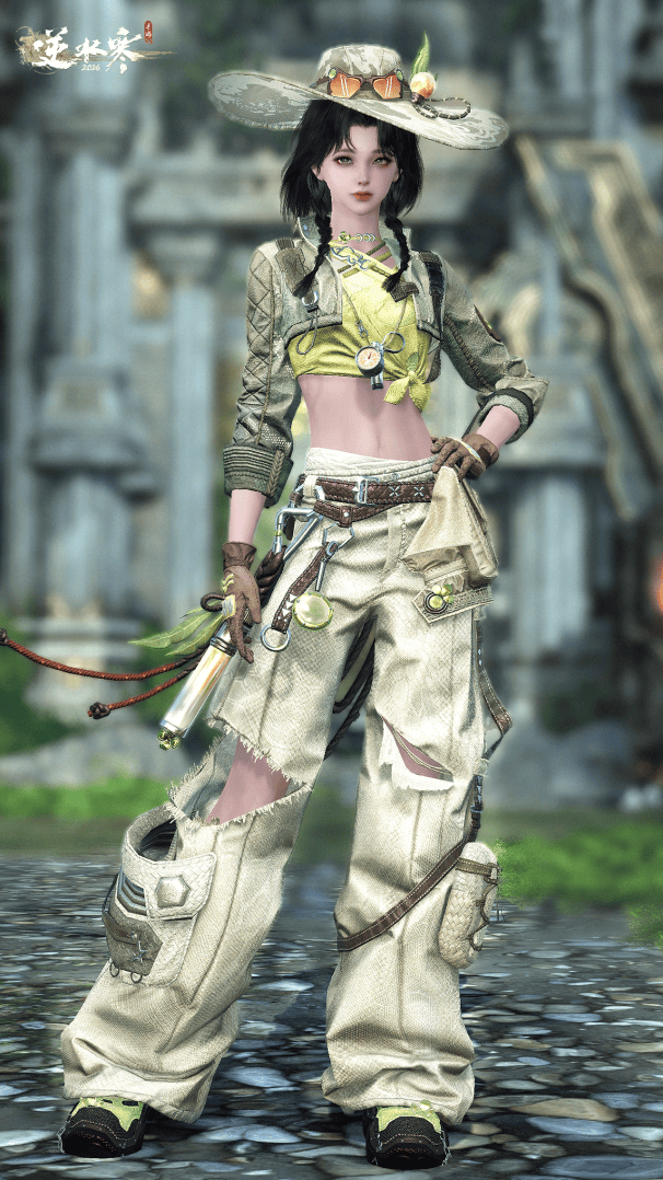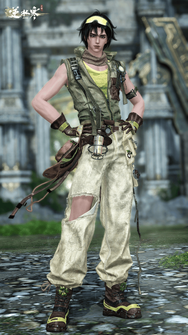 先给大家唠唠这套新时装有多香!女款是利落的探险风,高腰线短上衣+挺括阔腿裤,修饰腿型绝了,再搭个大帽檐防晒帽,又酷又实用,跑图再也不怕晒;男款无袖背心凸显硬朗气质,耐磨登山裤加破洞设计,粗犷中带点精致,细节直接拉满。而且男女款都能切换发型,戴发饰精致出街,隐藏发饰简约大气,一套时装解锁多种风格~