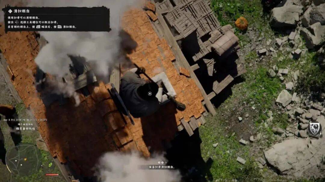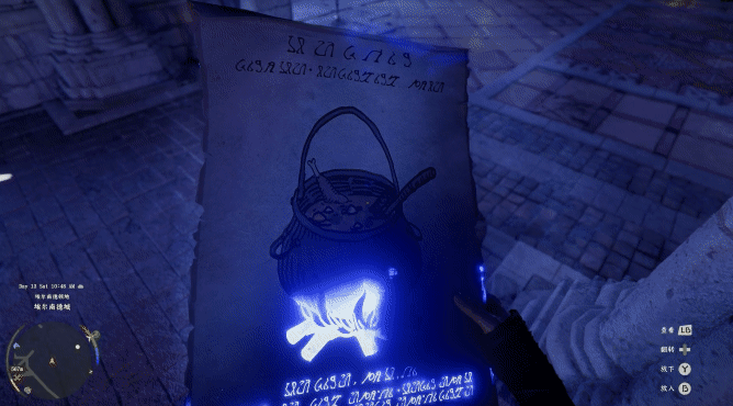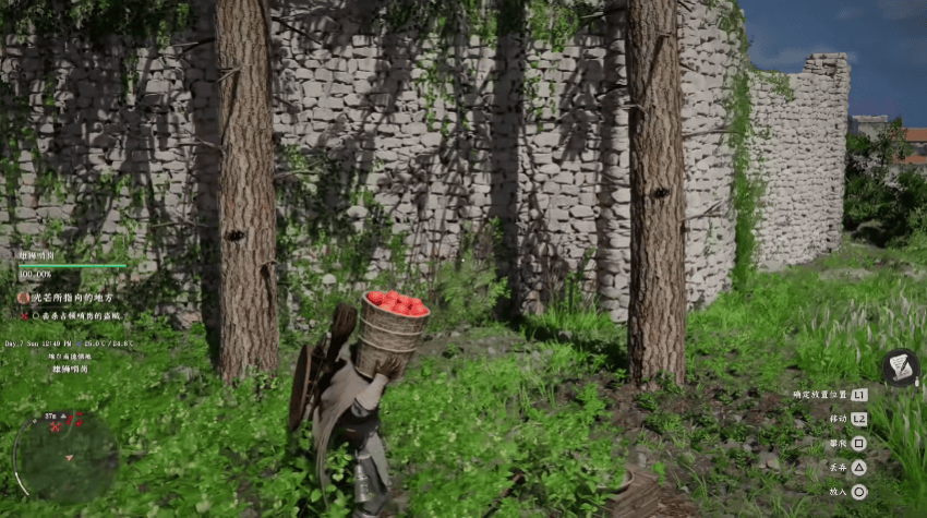 另外一点在于,如前文所说,游戏的场景构建十分复杂,许多装饰物也是可互动元素。比如室内的一根蜡烛,互动后可以点亮;野外的一篮苹果,互动后可以搬走……但这些可互动元素与真正的可拾取物并没有在交互层面做出区分,两者的提示与按键完全一致,玩家在互动前几乎无法判断结果。