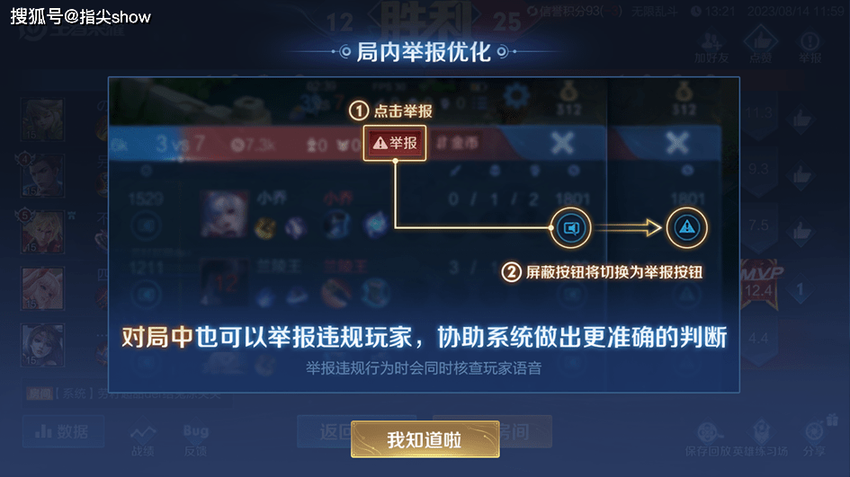 总结一下:以前在局内,你能举报的只有队友的语音,但只有那种骂的很难听的才会被系统警告,而我们做的更多的,只能是屏蔽他,很被动,憋着一股气也没地方发泄,和他对骂也不值得,因此这个局内的举报机制,可以严厉打击那些平时手和嘴不干净的玩家,第一时间让系统还自己一个清净的环境。