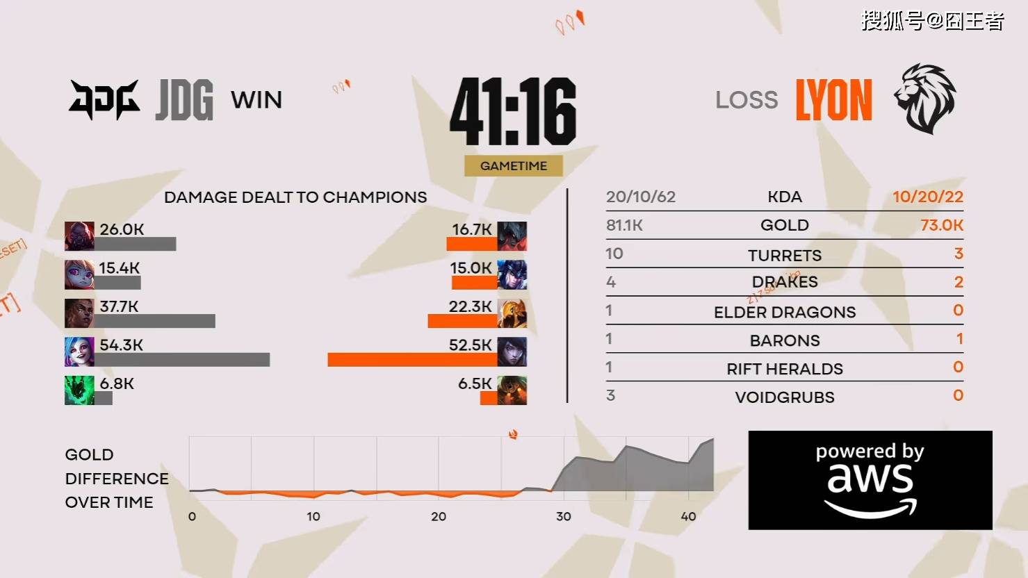 结果第二局比赛,LYON笑到了最后。1分钟,中路1V1,HongQ安妮闪现击败维克托,拿下一血;18分钟,中路爆发团战,GALA烬控住维克托,JunJia孙悟空配合队友斩下双杀,JDG打出零换二后拿下小龙;23分钟,中路团,GALA烬精准命中控住多人,JunJia孙悟空闪现越塔持续追击留下库奇,JDG完成零换四后顺势拿下大龙;最终40分钟,LYON集结五人推进至高地,赢下团战后果断推平基地拿下胜利。