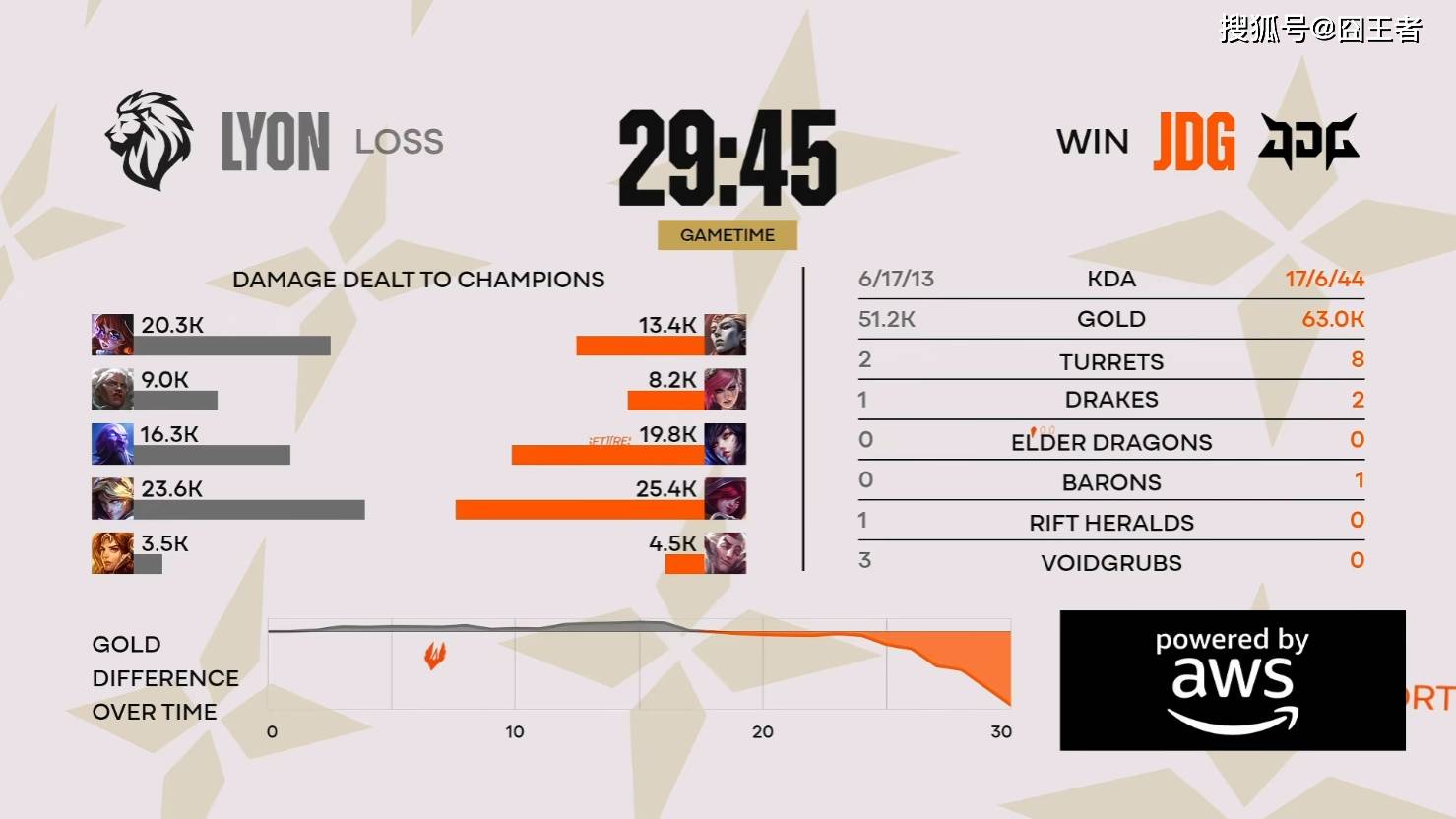 结果第四局比赛,依旧是双方各打了半场好局,这一次依旧是JDG笑到了最后。2分钟,下路2V2,Isles诺提勒斯闪现给控,Berserker厄斐琉斯配合队友击败锤石,拿到一血;29分钟,河道处,Xiaoxu赛恩配合HongQ梅尔击败厄斐琉斯,JDG打出零换四后拿下大龙;34分钟,小龙坑爆发团战,JDG先手拿下龙魂,GALA金克丝超高爆发斩下三杀,JDG完成二换五;最终41分16秒,远古龙团,GALA金克丝在队友配合下再次拿下三杀,JDG团灭LYON推平基地拿下胜利。