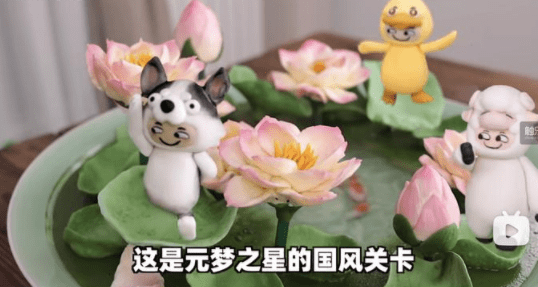 《元梦之星》的影响力并不仅限于此。美食Up主"绵羊料理"以游戏里的国风地图《荷叶水上漂》为灵感,用非遗仿真面点胶东花饽饽制作出了造型精美、亦可食用的荷塘场景。这不仅展示了《元梦之星》的独特魅力,也体现了游戏与现实生活的紧密联系。