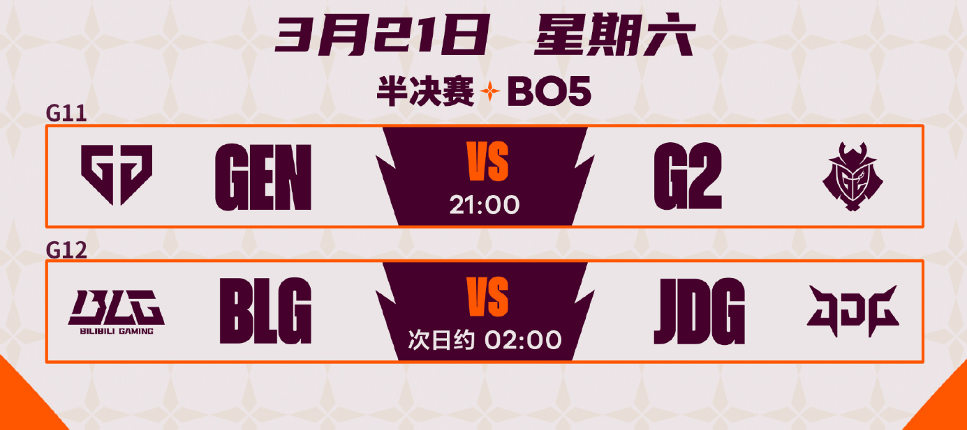 北京时间2026年3月21日-3月22日凌晨,全球先锋赛将在这一天迎来两场半决赛的对决。首先,就是GEN与G2的对决;其次,就是LPL的两支队伍BLG与JDG上演内战。值得一提的是,从目前整个赛事的表现来看,GEN与BLG在决赛相遇的概率还是比较大的。不过有趣的是,G2这支队伍在不久前以3-0的总比分击败了BFX,而JDG在LPL联赛中有过击败BLG的记录。而正所谓“王不见王”,那么,BLG与GEN最终能够在决赛中相遇吗?而半决赛又有哪些看点呢?就让我们一起来了解一下吧!